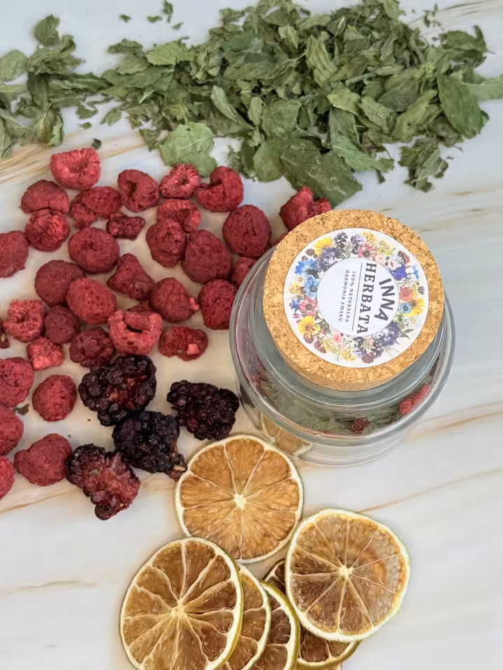Intensywny, owocowy smak z wyraźną nutą malin i jeżyn, przełamany świeżością mięty i cytrusową nutą limonki. Lekko kwaskowa i naturalnie słodka.. Idealna do picia na zimno lub jako lekki, odświeżający napar w ciągu dnia.